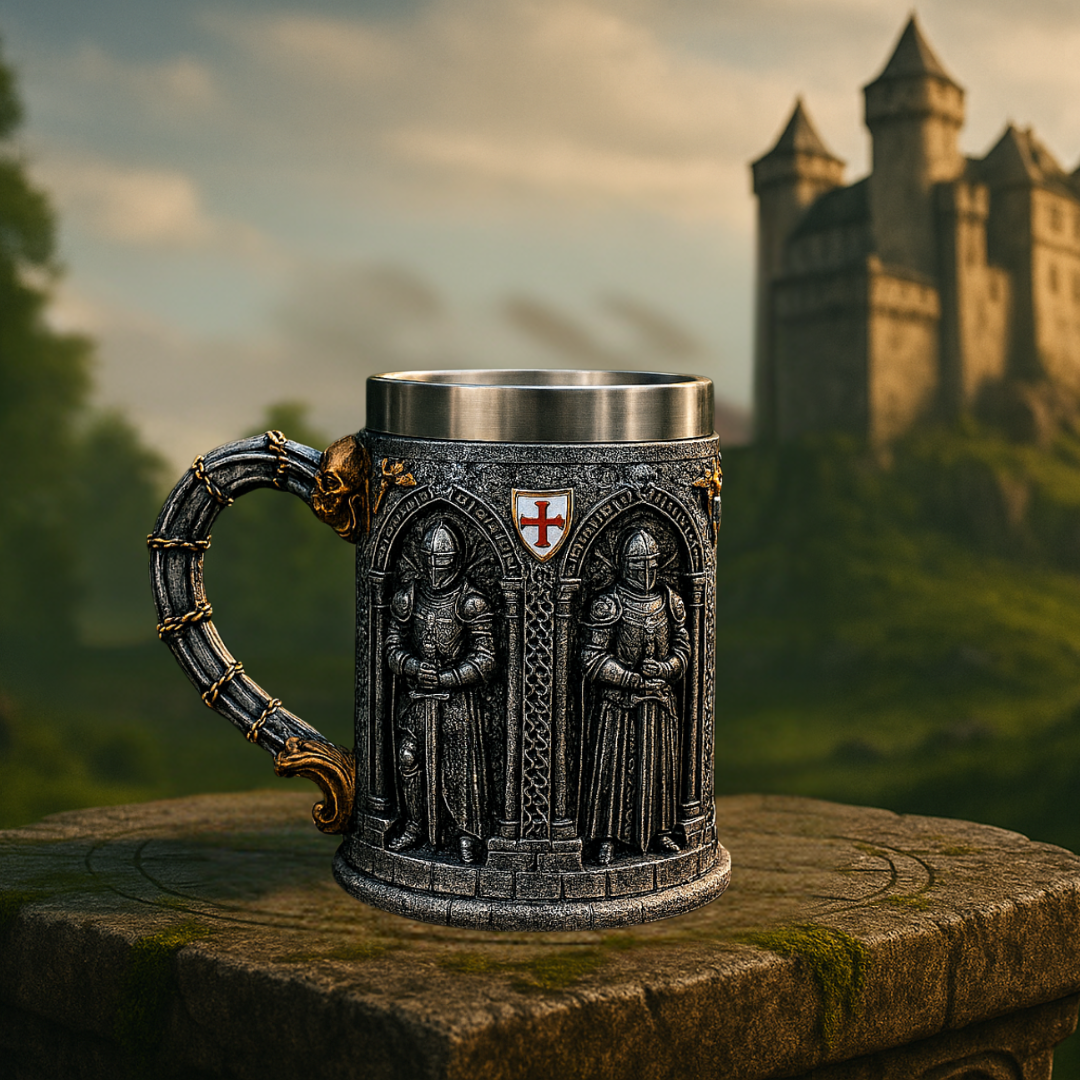 Jede Tasse wird mit größter Sorgfalt und einem Auge fürs Detail handgefertigt, bemalt und poliert. So entsteht ein einzigartiges mittelalterliches Design🏰